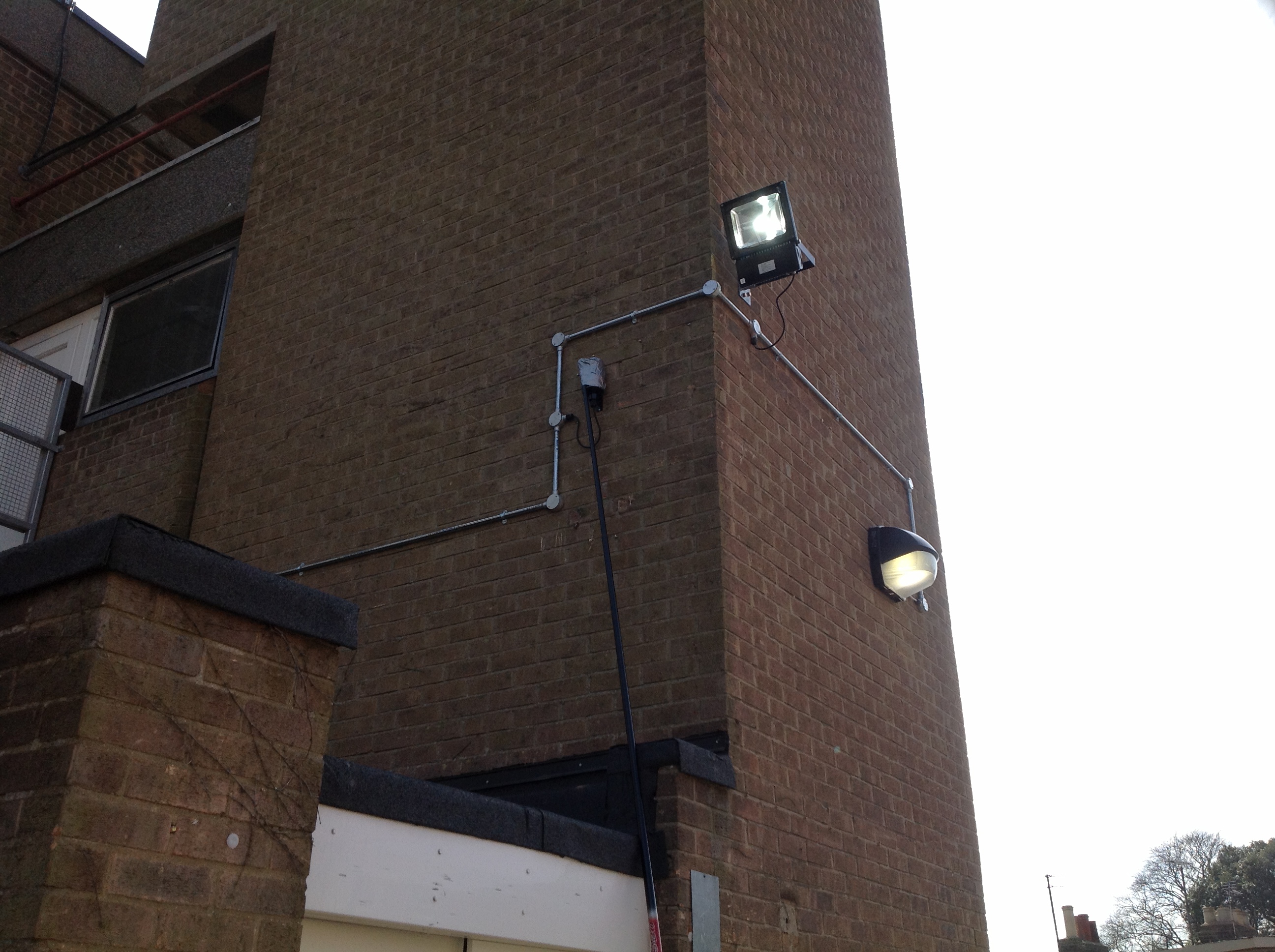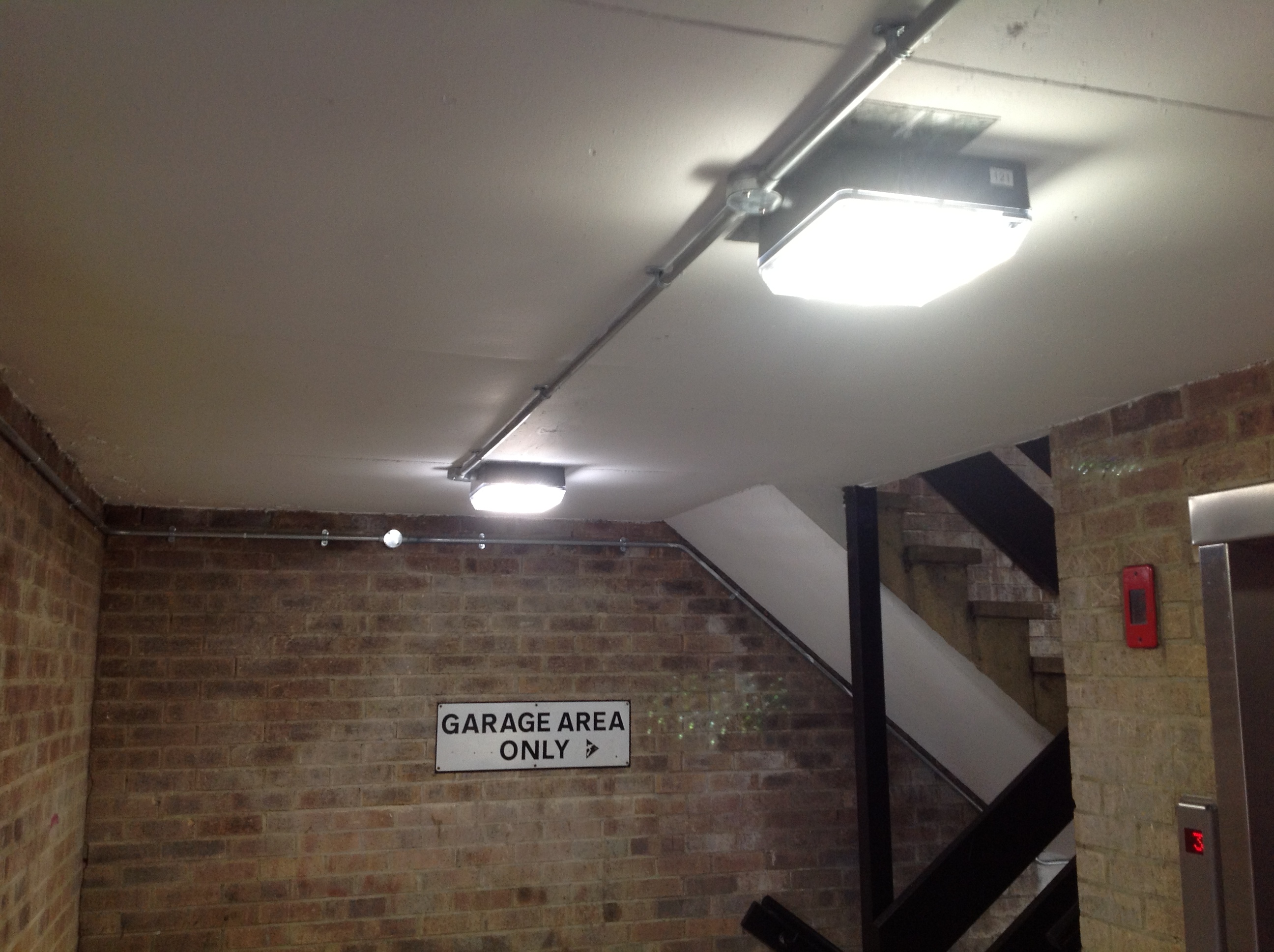 The project consisted of installation of LED communal general and emeregency lighting to the communal areas of two Tower blocks in Cambridge and LED floodlights and surface lighting to the adjoining car park.
